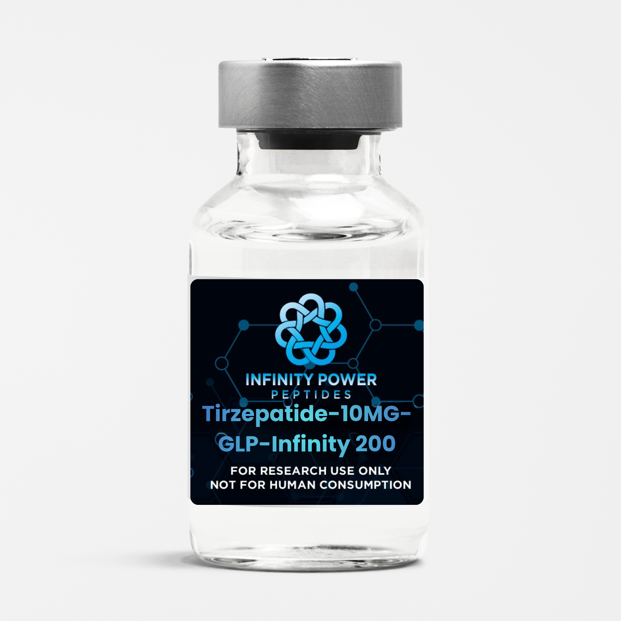 Infinity GLP-Dual (Tirzepatide) is a research-grade synthetic peptide supplied as a sterile, lyophilized powder for laboratory use. Each vial contains 10mg Tirzepatide and is manufactured in a GMP-compliant facility with strict process controls and lot-level documentation.